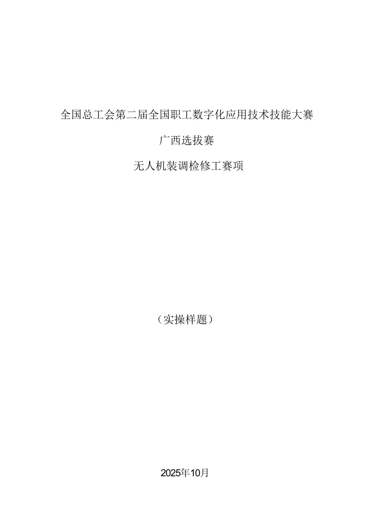 全国总工会第二届全国职工数字化应用技术技能大赛广西选拔赛无人机装调检修工赛项样题