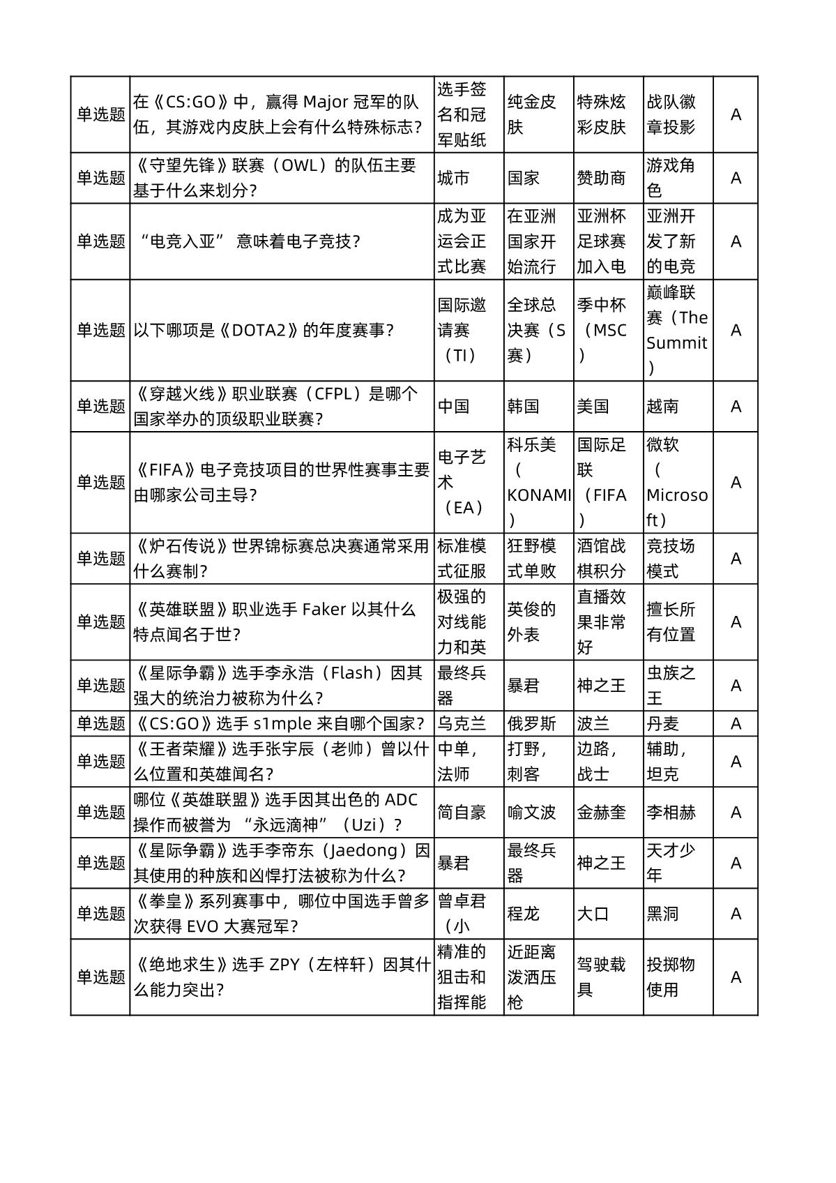 全国总工会第二届全国职工数字化应用技术技能大赛广西选拔赛电子竞技员题库