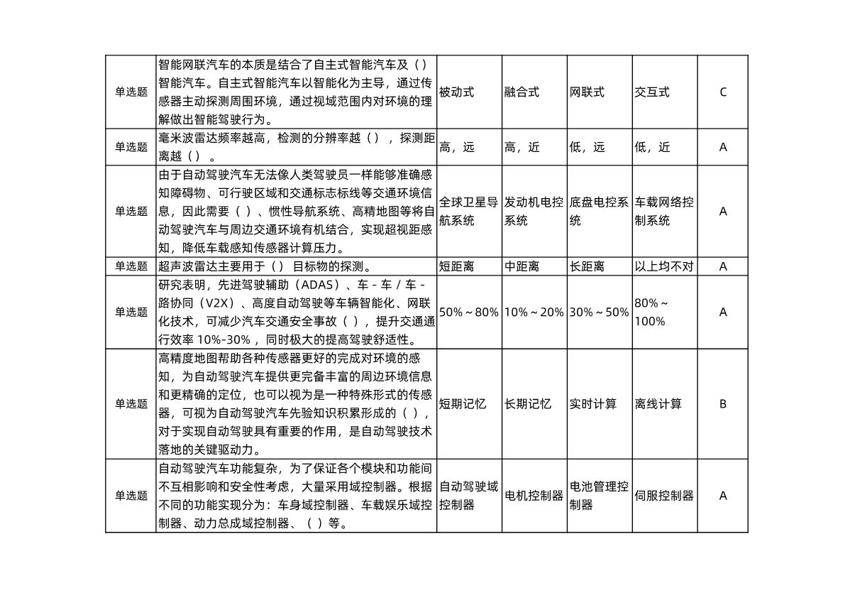 全国总工会第二届全国职工数字化应用技术技能大赛广西选拔赛智能网联汽车装调运维赛项题库