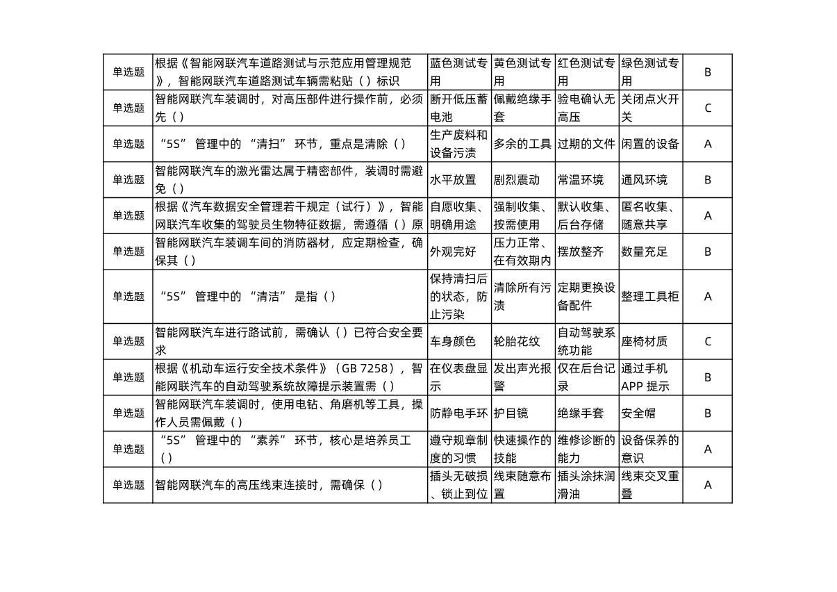 全国总工会第二届全国职工数字化应用技术技能大赛广西选拔赛智能网联汽车装调运维赛项题库