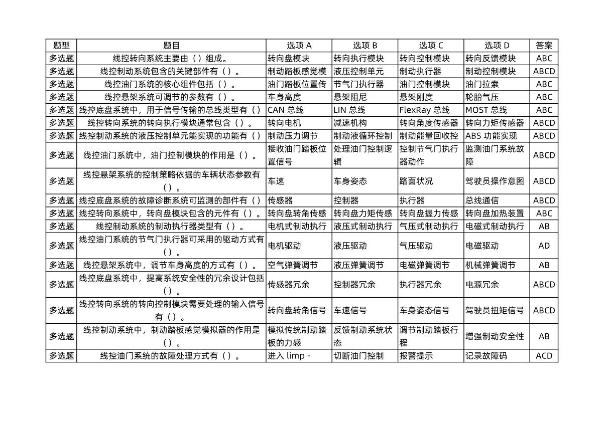 全国总工会第二届全国职工数字化应用技术技能大赛广西选拔赛智能网联汽车装调运维赛项题库