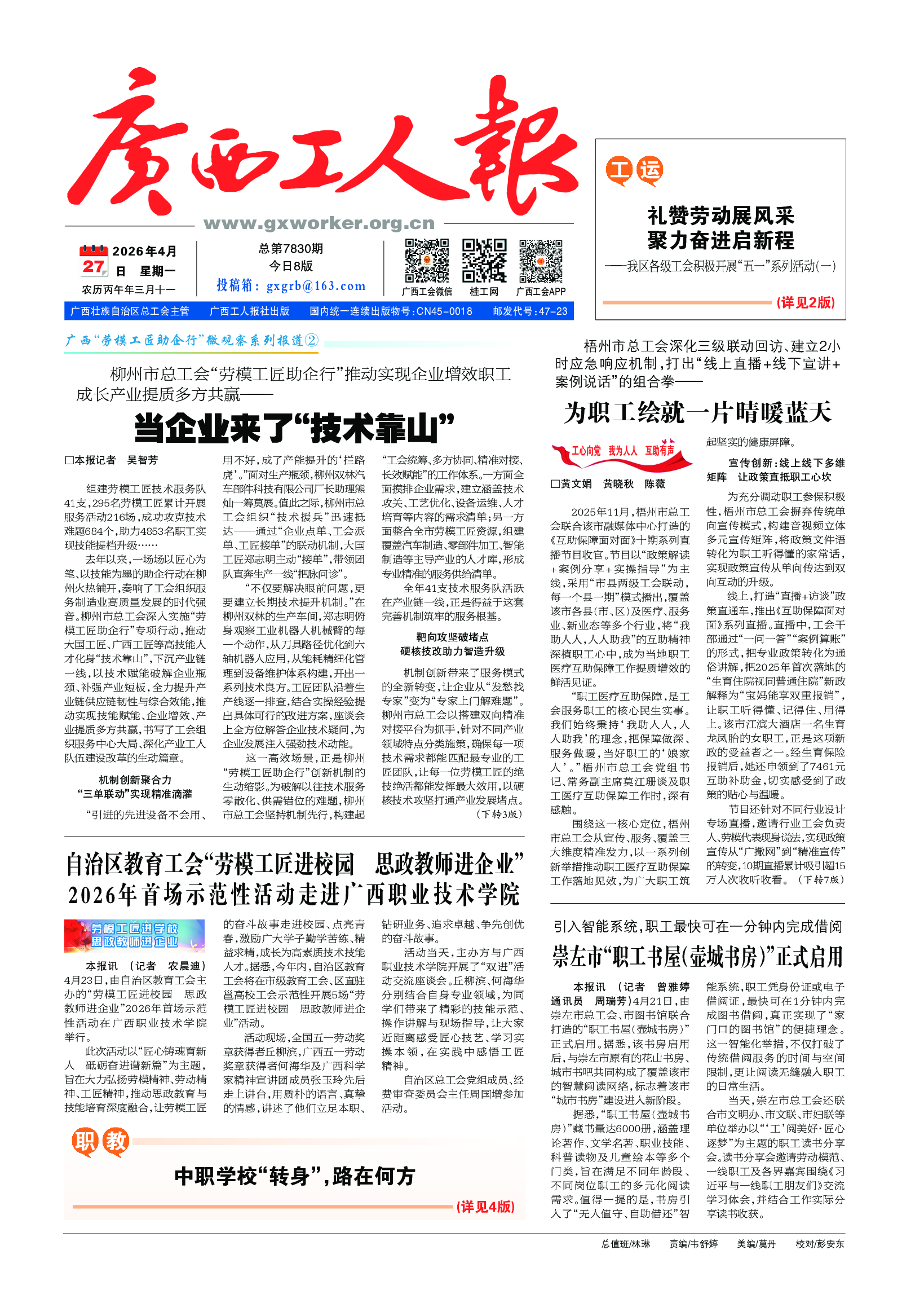 4月22日至23日,自治区人大常委会副主任、党组副书记,自治区总工会主席方春明率队到柳州市调研工会工作。…