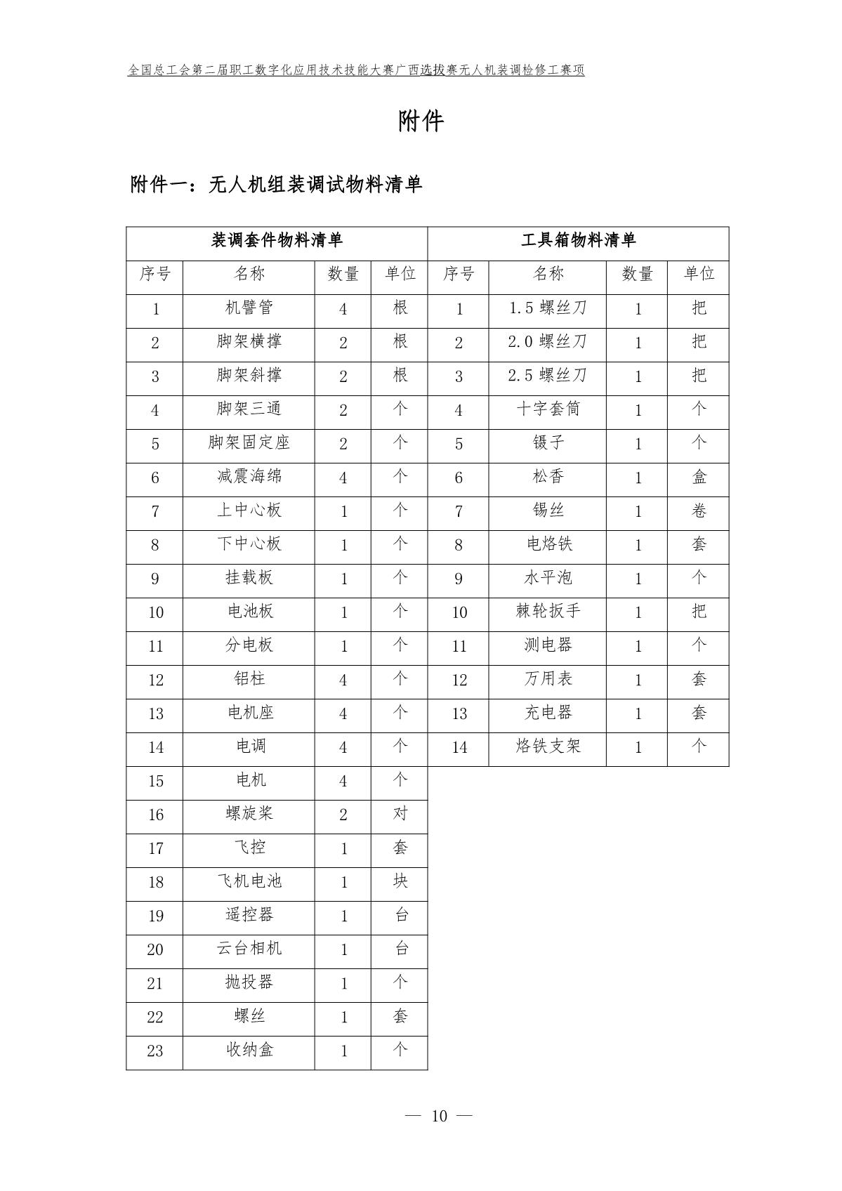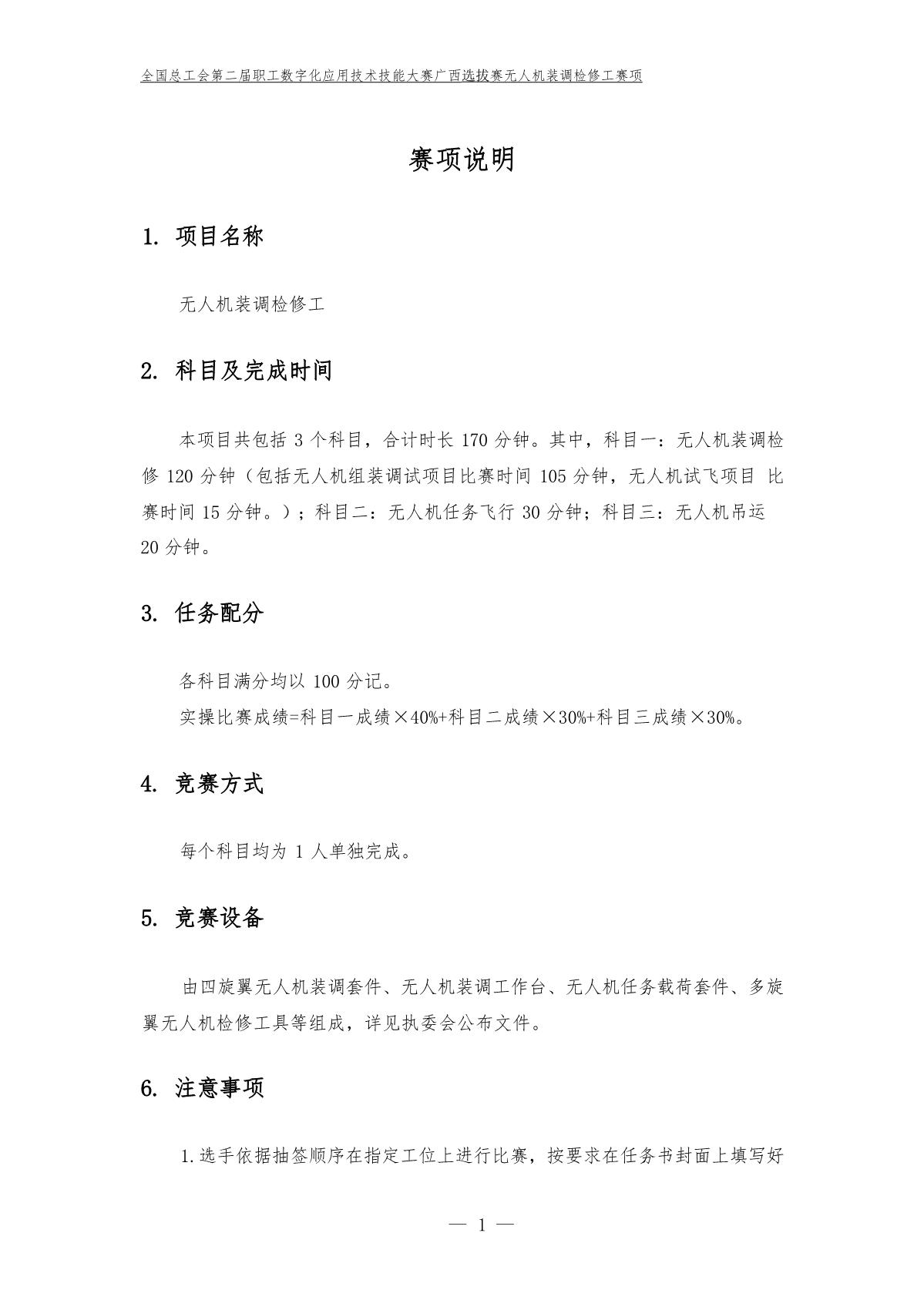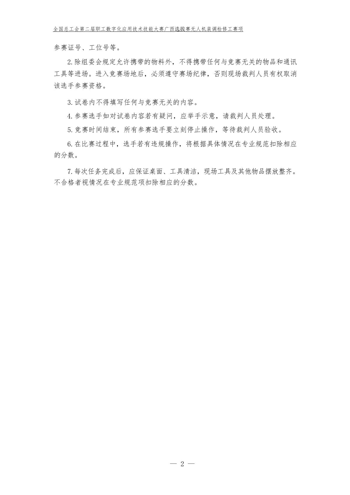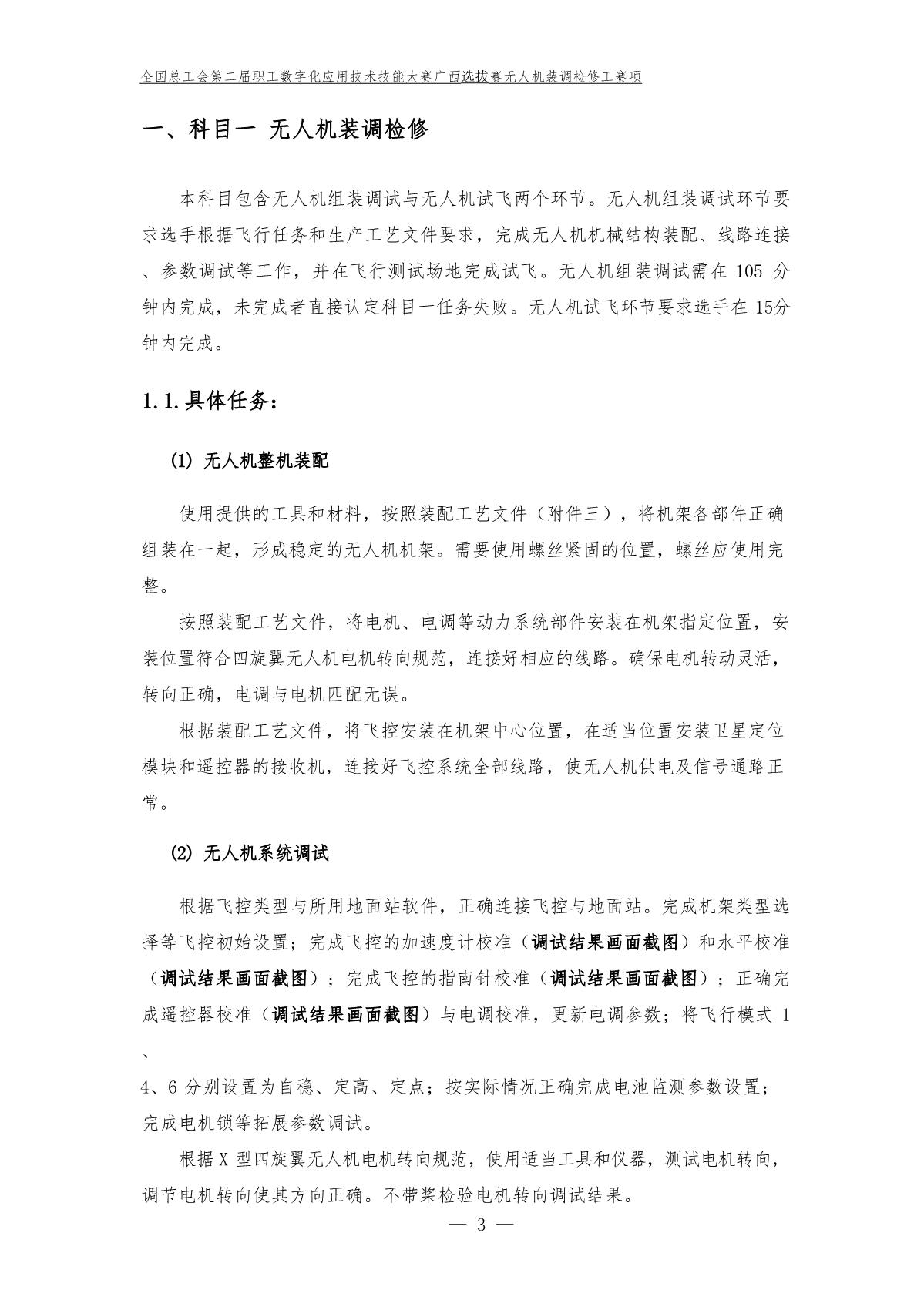 全国总工会第二届全国职工数字化应用技术技能大赛广西选拔赛无人机装调检修工赛项样题